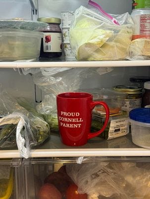 aw I love the end when you see the "proud cornell parent" mug and break out of your thoughts (it's always an awakening moment for us over-thinkers) and realize how much we project our past onto our present, when reality has transformed into something new & beautiful already